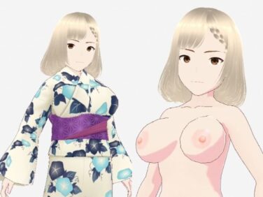 金髪の浴衣の和風美女(セリフなし 3DCGモデル イラスト集)